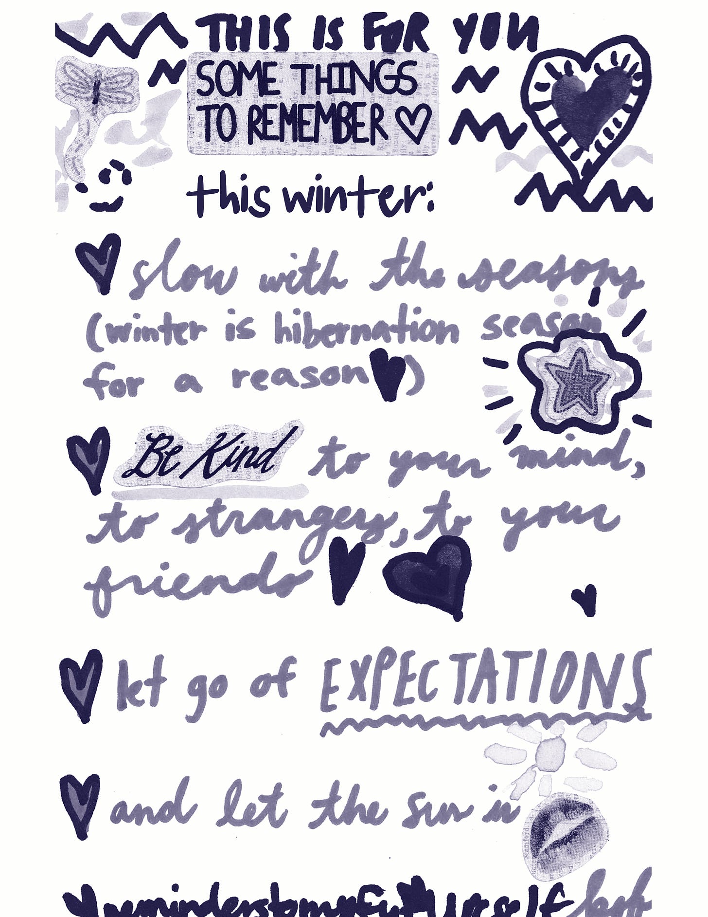 so, you can now sign up for a substack subscription for $5 a month (if you live in the US) and I will send you a monthly collage kit every month (yes even if you only subscribe for one month). every collage kit comes with a prompt card and a surprise vinyl sticker <3 (you can opt out of physical mail if you hate mail, which I learned recently that some people do?) I will be launching this as a monthly mail club as a part of rewind for $10 a month so if you are a paid substack subscriber, you get it half off ;)
